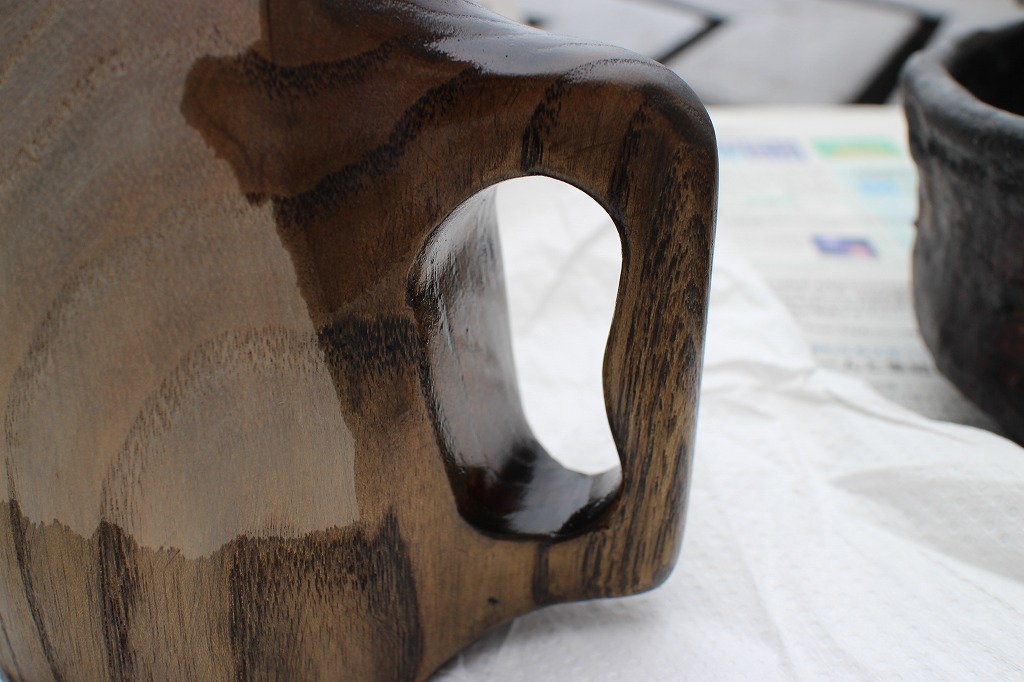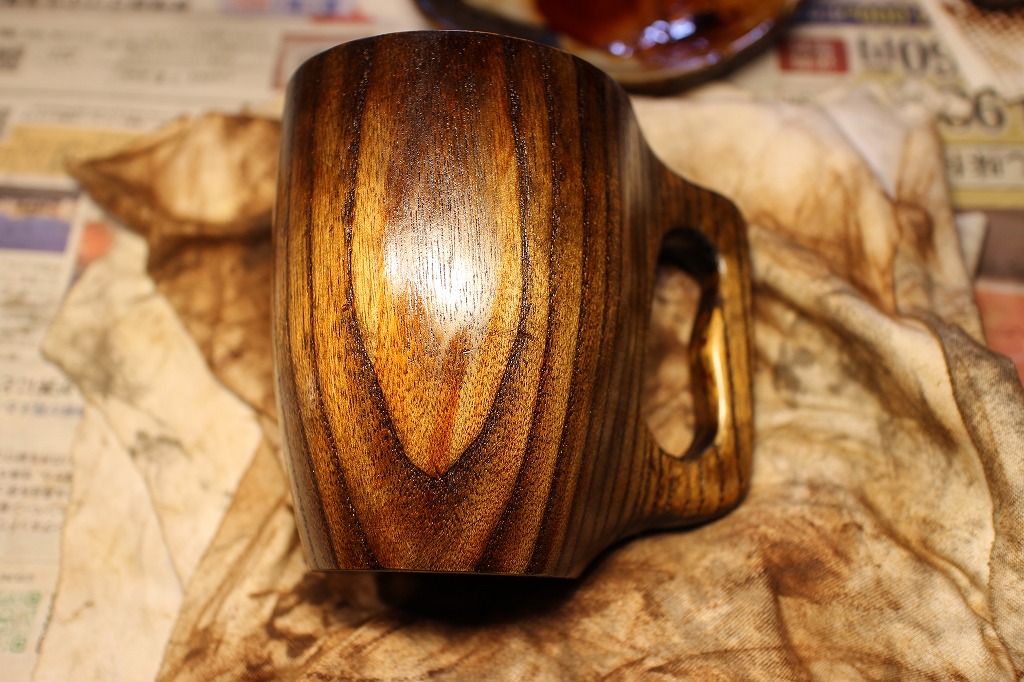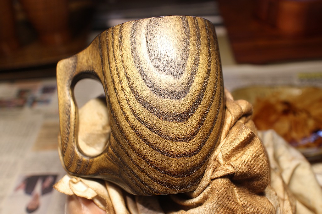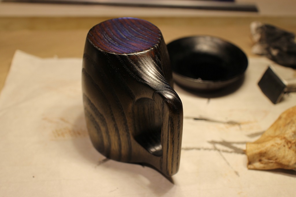 前回は鉄媒染液の塗布まででした。その次に黒中漆の10倍希釈液で木地固めをしましたが、仕上がりがいつもと違います。若干薄す過ぎたのか導管部分がしっかりとした黒模様を呈しませんでした。二度塗りはしたくないので、上塗りに黒中漆を使い何回か塗り重ねることとしました。
