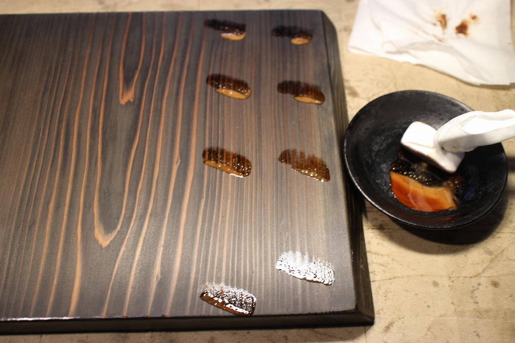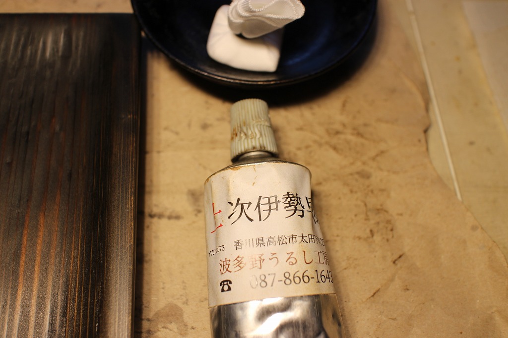 伊勢早漆による拭き漆です。今回まで和紙でしっかりと拭き取ります。