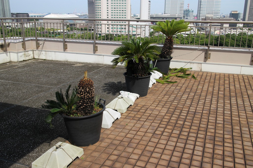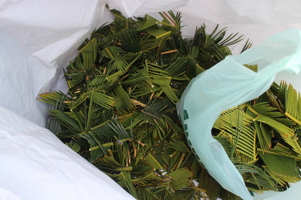 ②今年の梅雨はもう上がりそうです。ソテツが例年よりもひと月くらい早く新葉に変わりつつあります。既に4本あるうち2本が100%、1本が70%くらい新葉です。今日は古葉を落として切り刻み、それをゴミ袋に入れて(ソテツの葉のトゲは痛いのでトングを使い)捨てに行きます。