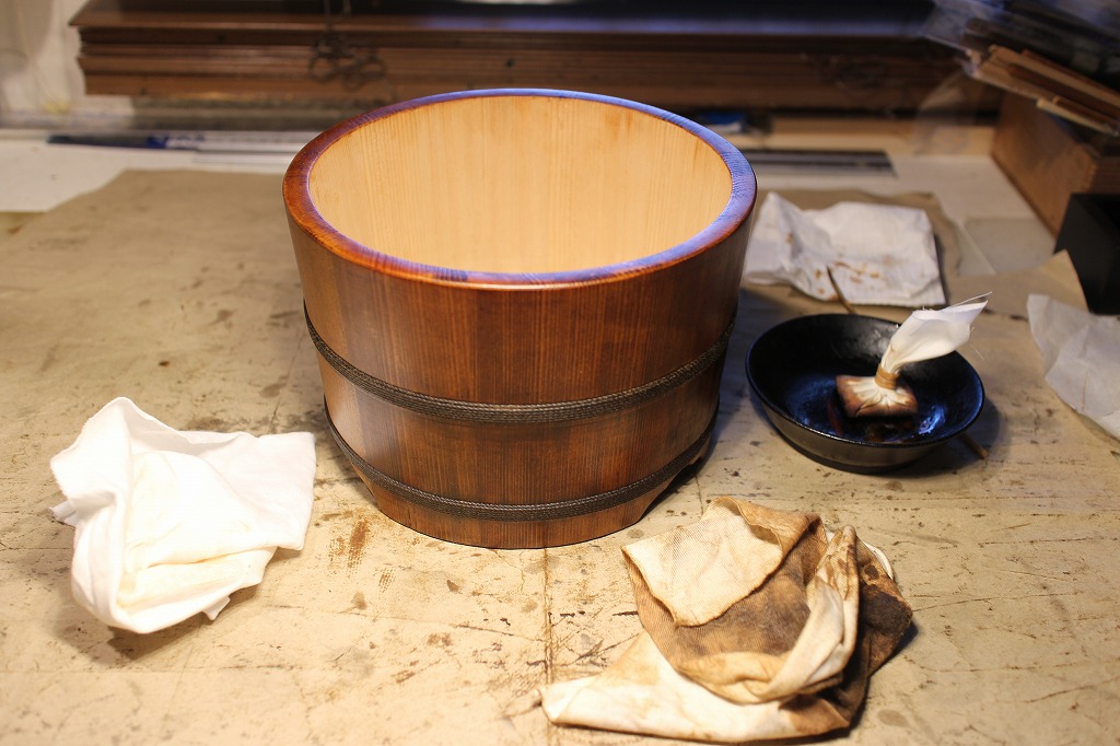 本日は一旦お客様が使われたお櫃のお化粧直しを中心に記録します。