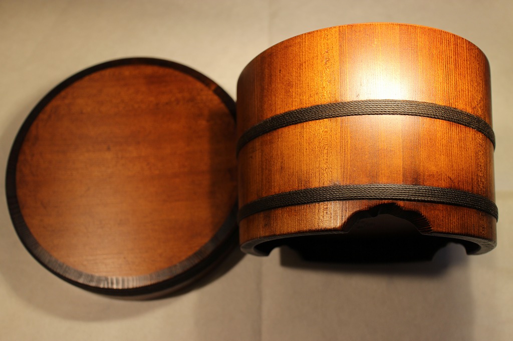 そこでこのお櫃は内部に漆を塗ってありません。併せて胴タガが劣化していたのでそれを外して