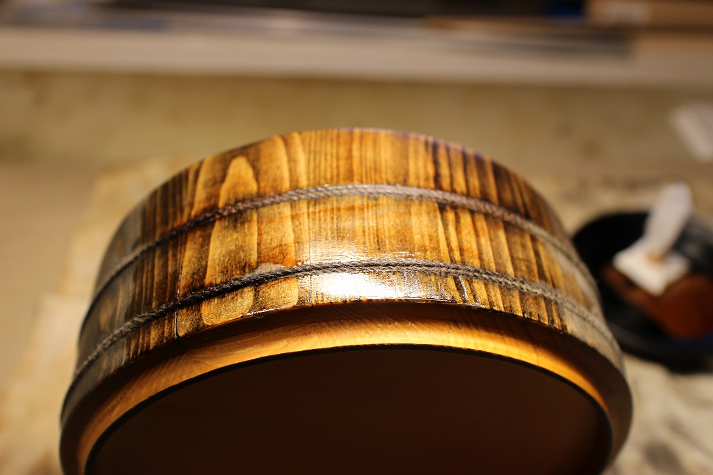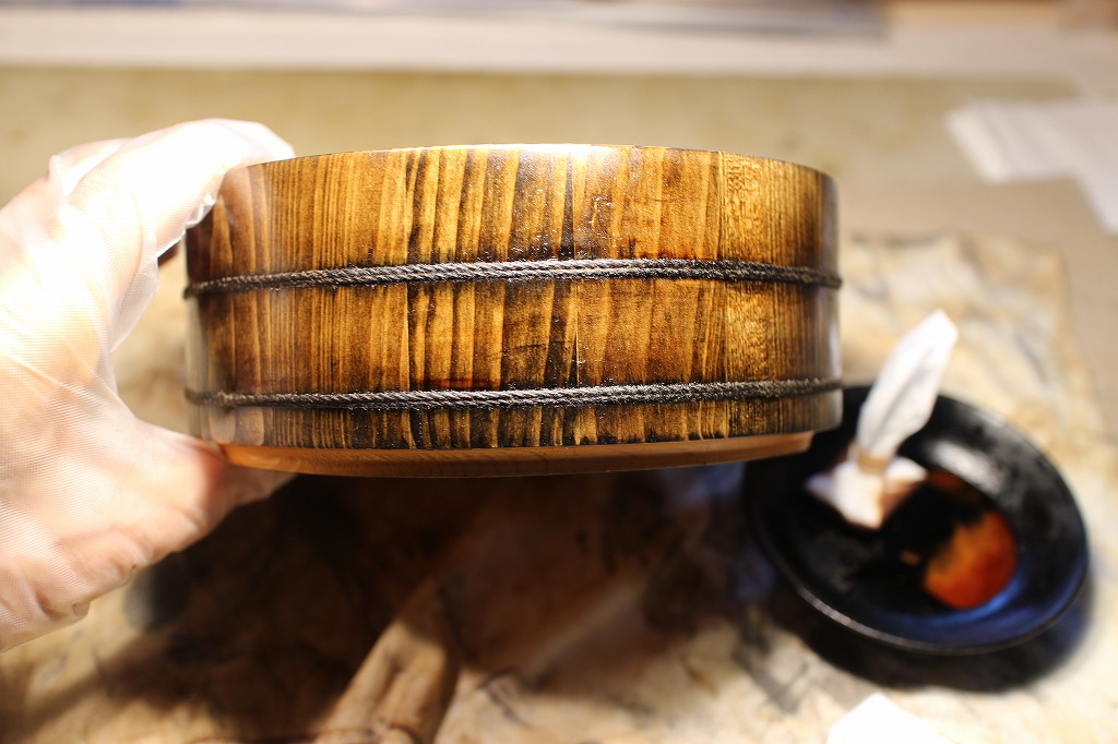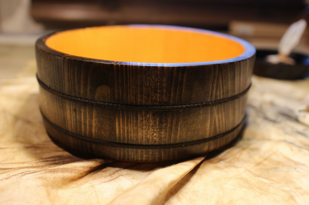 前回から手掛けているのは、直径17cm高さ7cmの別物釜揚げうどん桶です。サンディング