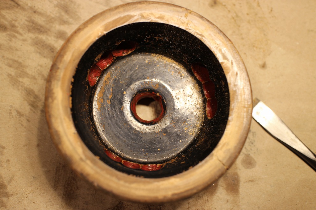 お盆が過ぎたころ、仏壇の中のリン台のお化粧直しの話しが舞い込んできました。長い年月の