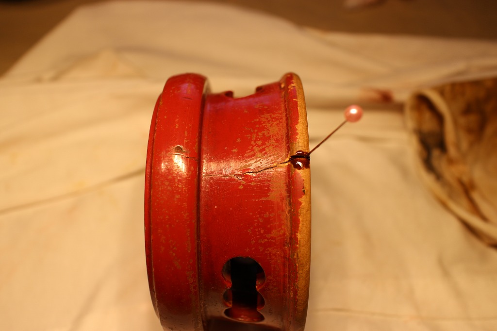 予測していましたが、一晩経って漆が乾いてもひび割れ部分は塞がっていません。そこで、