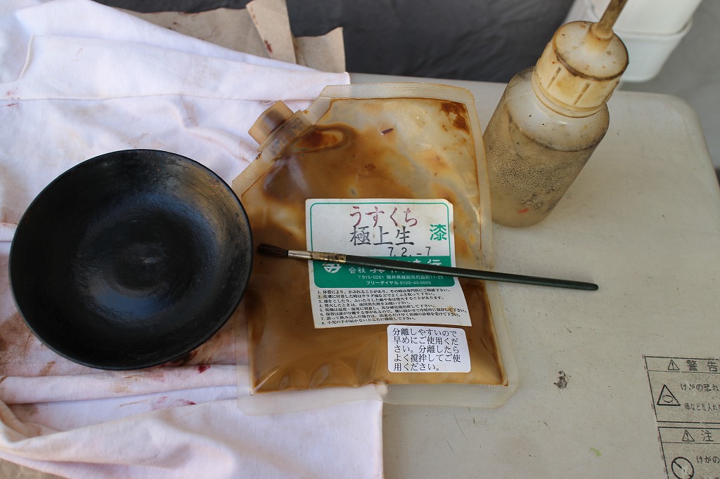 そこで小さな本朱漆を仕入れて試し塗りをしています。