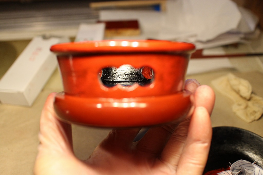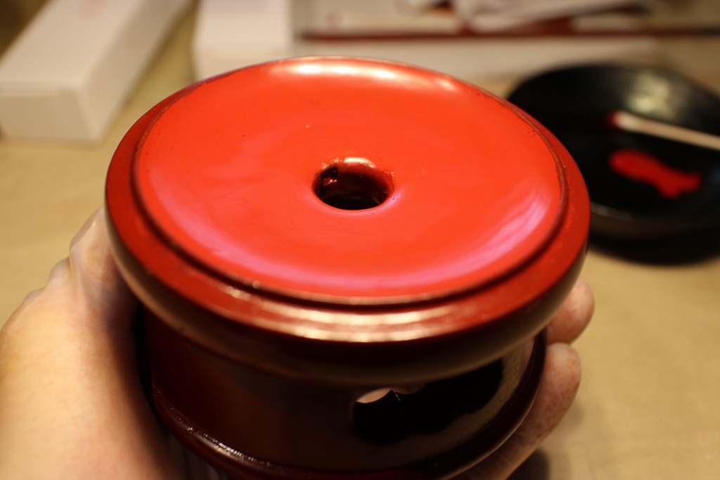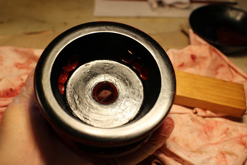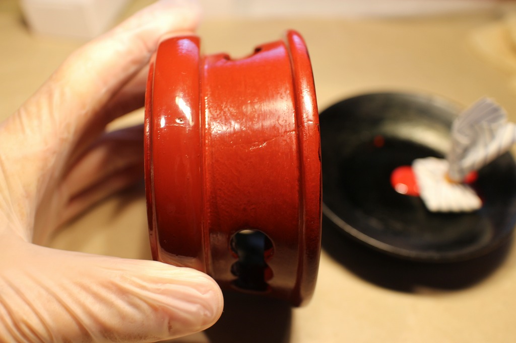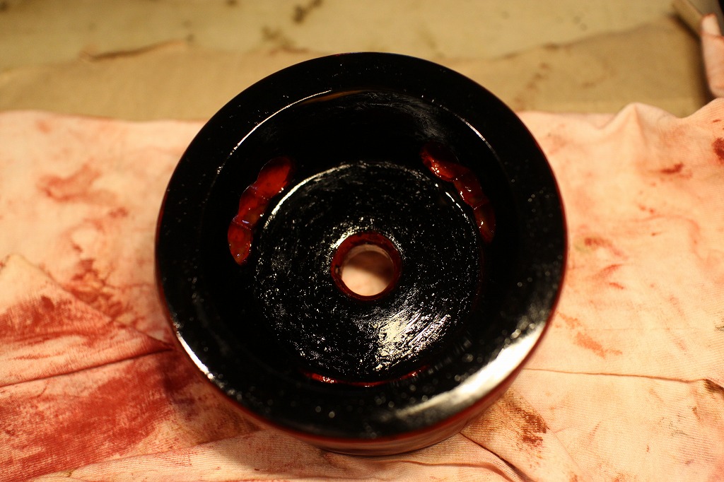 出来上がったリン台に極上生漆でコーティング塗りをしました。これで全体が落ち着きます。