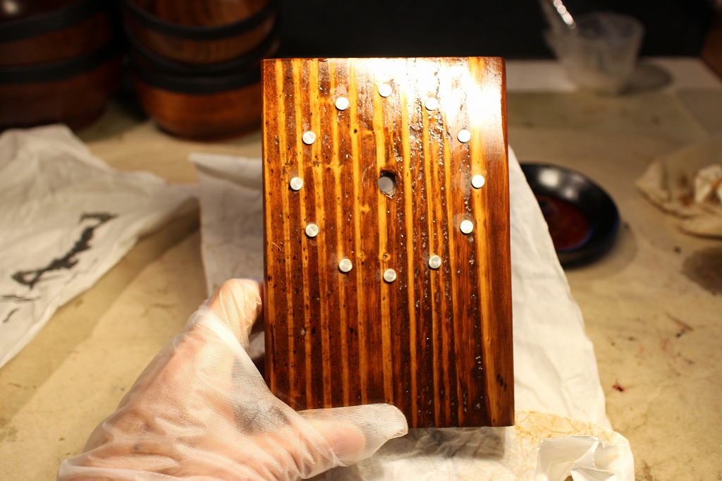 昨年の暮れからの宿題がふたつありました。そのひとつが手作り時計の修理とお化粧直しです。昨年暮れに発注していたクオーツ・ムーブメントと針のセットが届いたのでお化粧直しから始めます。宿題その②はお椀の縁取り麻布張りの塗り仕事(仕上げ)です。