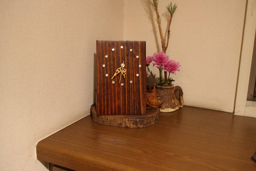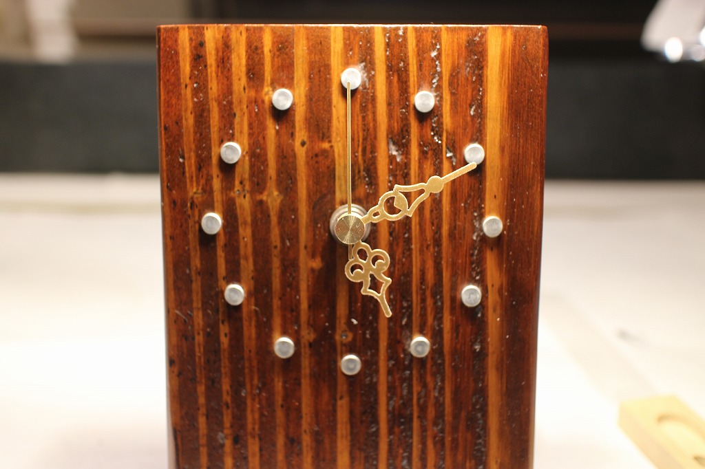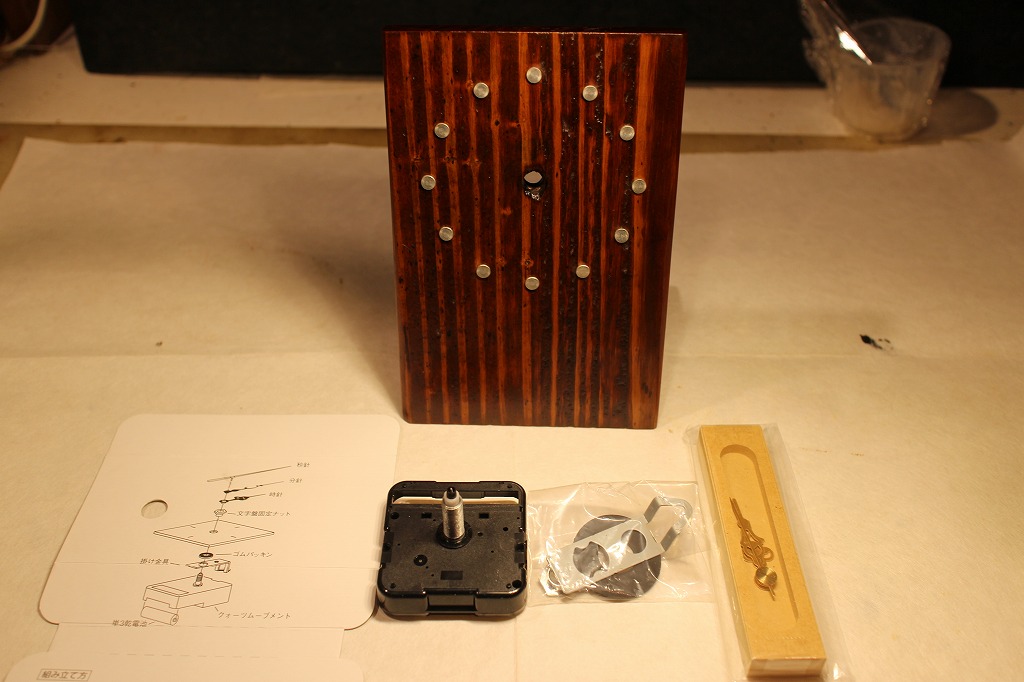 まず手作り時計はお化粧直し(上塗り)をして → 新しいムーブメントと針を取り付けます。