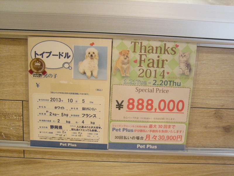 なななんと、トイプードルが約90万円!!お~ヤダヤダ。