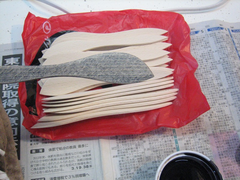 デーニッシュ・バターナイフを23本、一気呵成に塗り始めました。