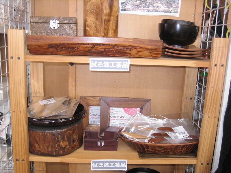 上段に大物を置いてあって、ちょっと頭でっかちなディスプレイなんですが、なにせ、工芸品コーナーは奥まったところにあるので、遠くからでも目立つようにしています。