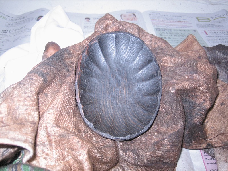 最後に、お気に入りの葉っぱのトレーを塗り終わったら、丁度、錆び付け漆もなくなりました。