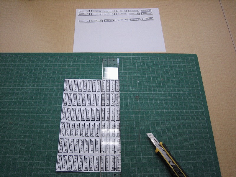 早速、値札の作り直し → カッティング → 作品に貼りつけます。(この作業に約2時間)