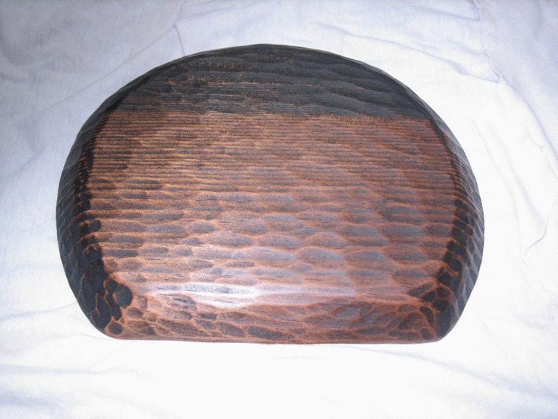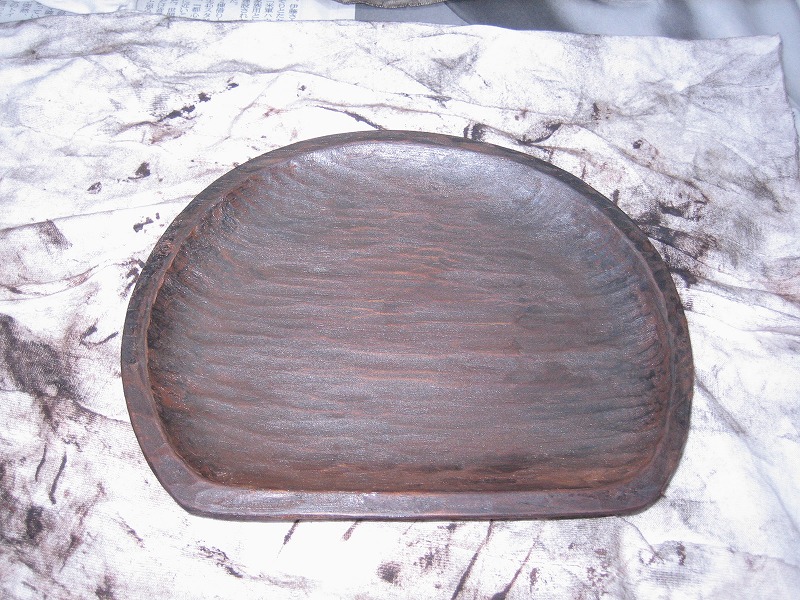 先月の下旬頃、塗っては深く滲みこむ一方の木端口取りの片口と比較してみてください。