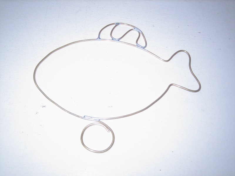手曲げで魚の外形を作って → 作業版にガムテープで止めて → ハンダ付けです。