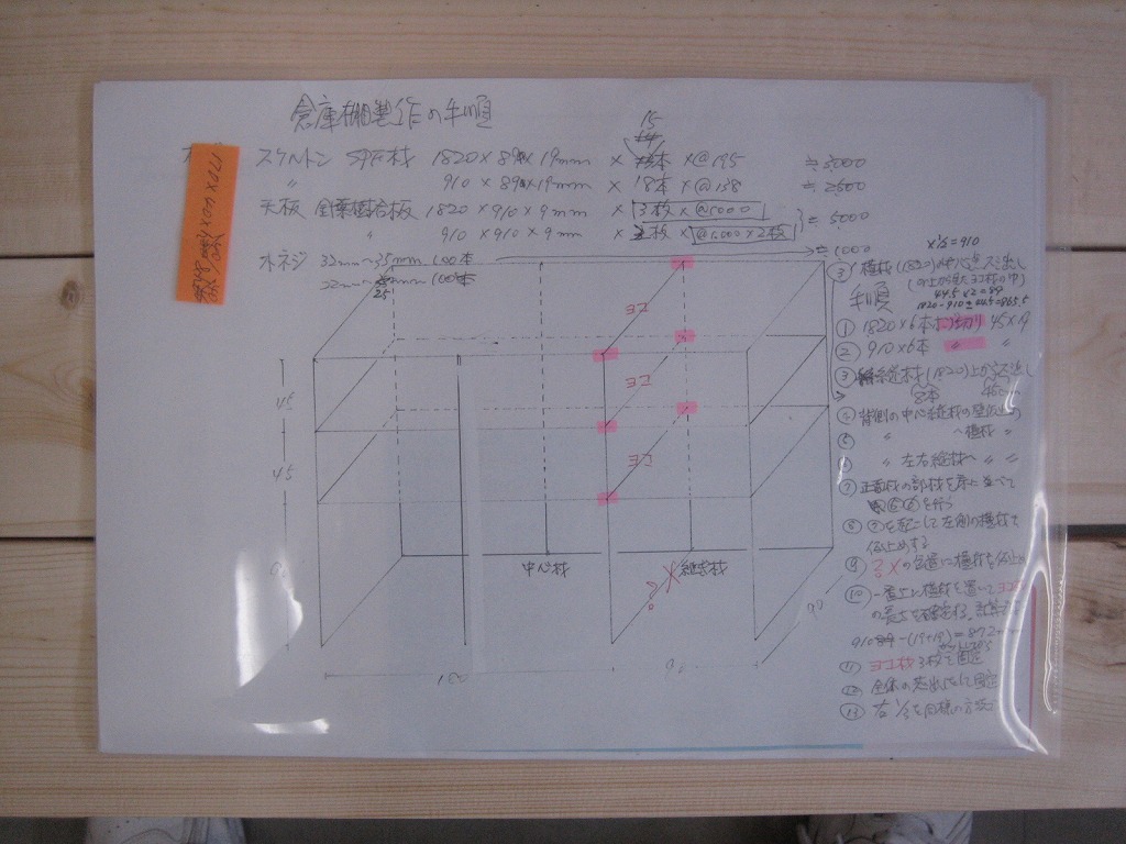 今日の予定は、何時間かかってでも、今日中に資材置き場に大きな棚を設えることです。