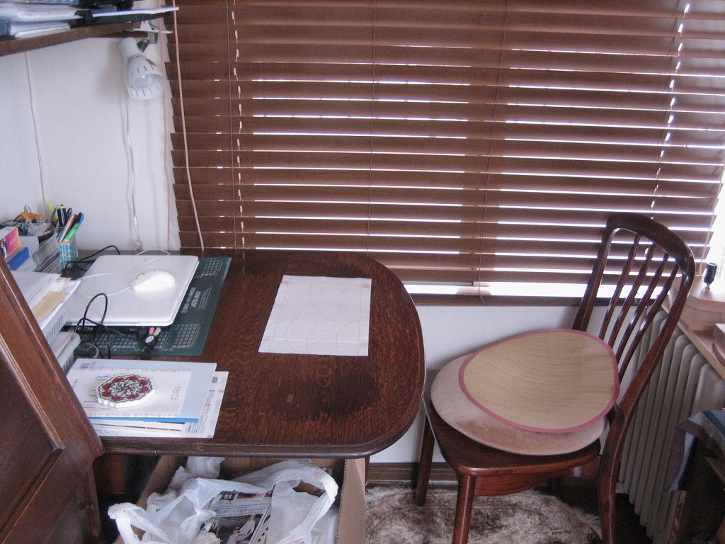 午前中は、スクリーンランプのテキスタイル作成です。教科書を参考にしてダイナミックにしたつもりですが、いかがですか?使ったのは、定規と楕円のお皿。