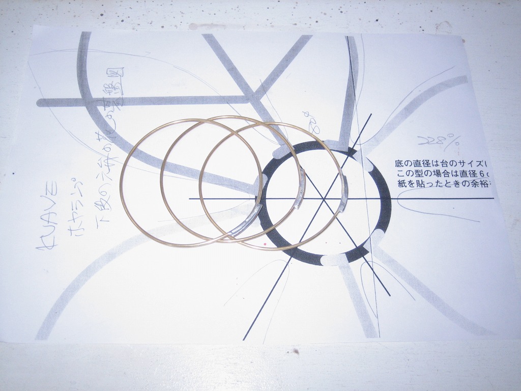 次に登場したのがリング状の真鍮線、そのままのクセが使えます。手曲げでこの通り・・・!