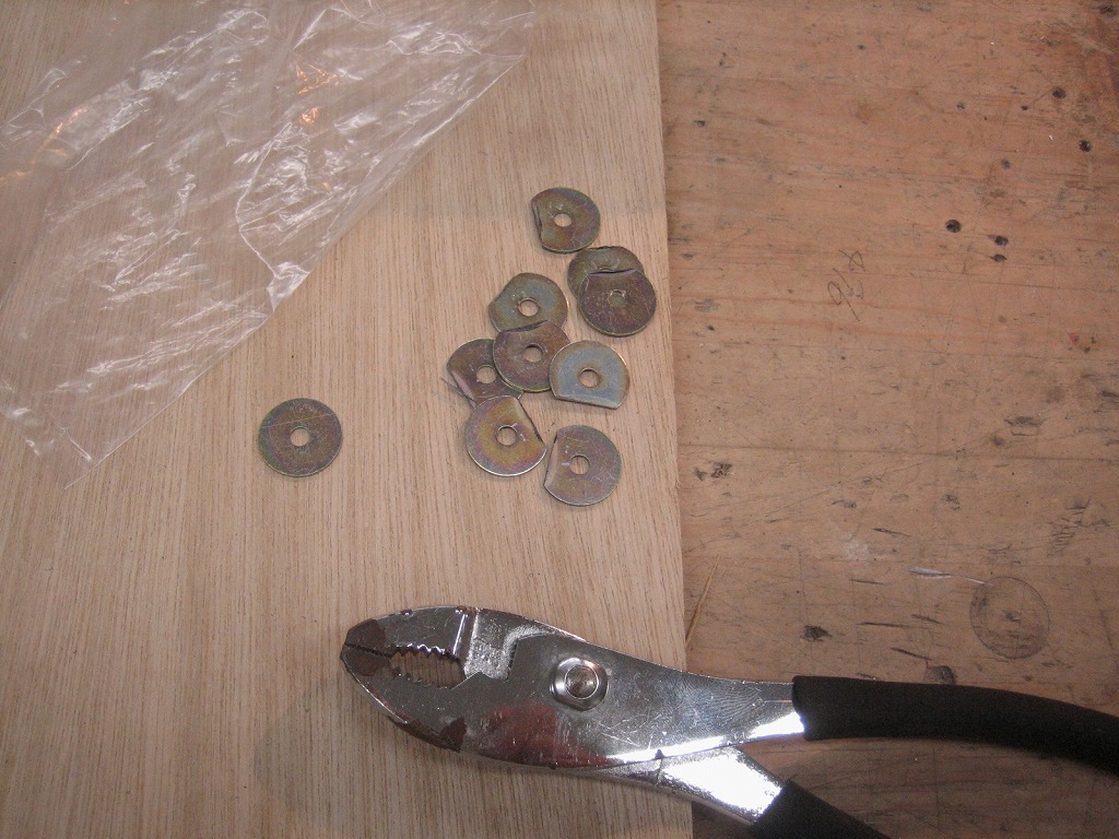 工作室では、平ワッシャーの一面をグラインダーで直線に削ります。