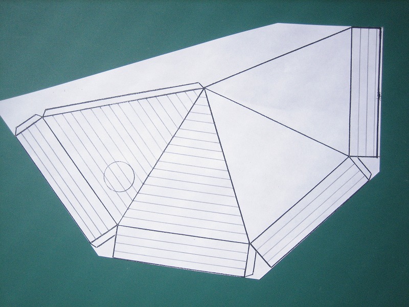 今日のお昼休みはジグソーパズルみたいなことをやってました。ピラミッドランプのシェードの設計です。