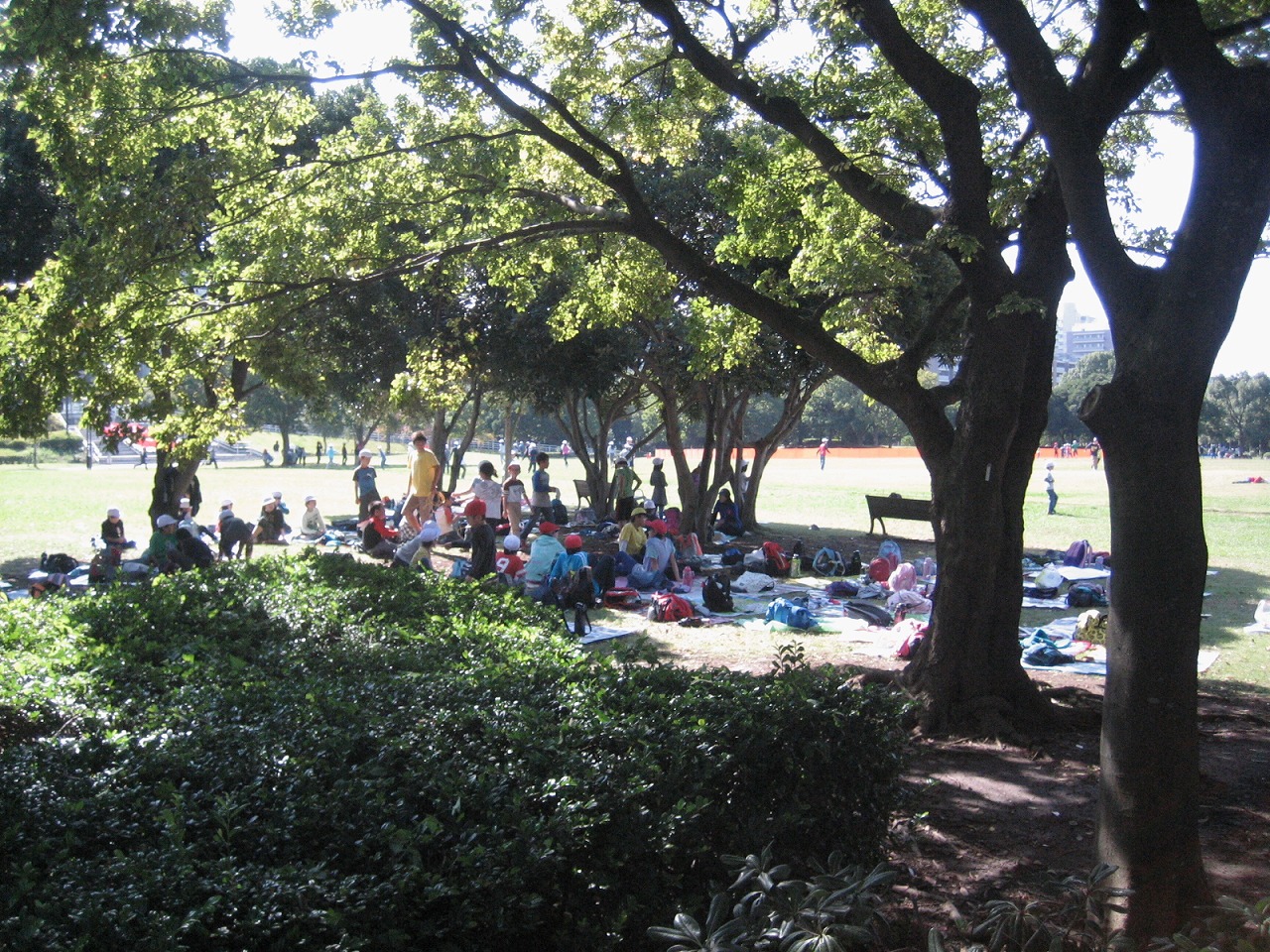 駅から自宅までの途中で、公園では打瀬小学校の生徒が全員で課外授業(言い方が古いね!)の真っ最中でした。上級生が下級生の面倒を見て遊んでいます。ほほえましい~~。