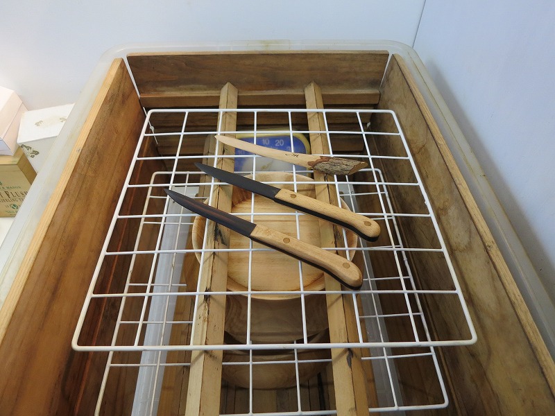 今日塗るのは台座2個とペーパーナイフ3本。使う漆は摺り用生漆。
