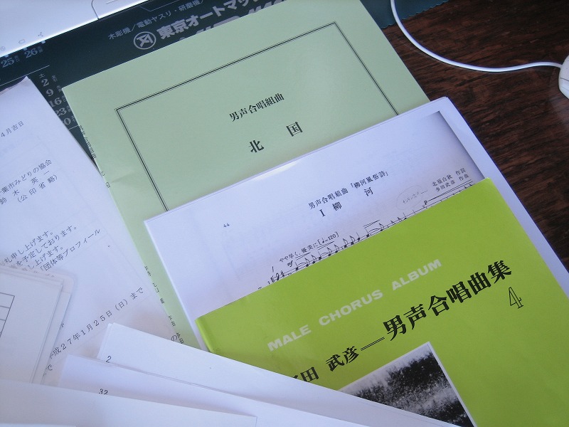 そういう時こそこれに限ると取り出したのが、楽譜。急遽出演することになったグリークラブOB会の演奏会の音取りです。