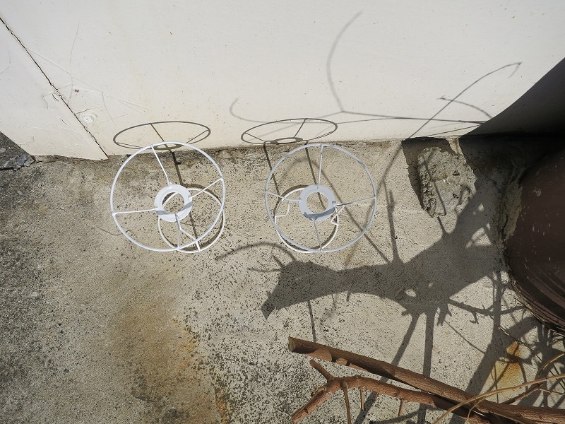 次に裏通りに行ってラッカーの吹き付け。錆び止め付け → 白のスプレーラッカーの順。