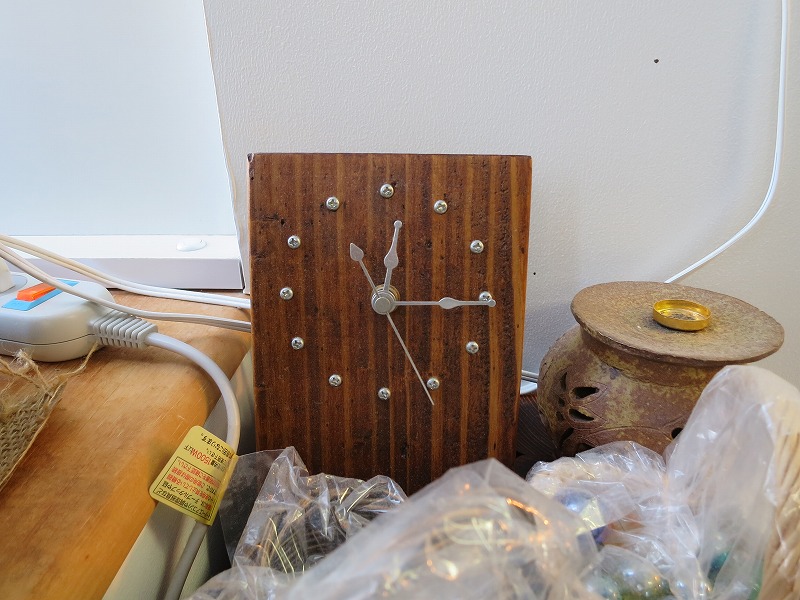 出来上がりの状態は、耳たぶくらいの柔らかさ。そこに同量の生漆を加えるのですが、漆が入るとやたらに手が使えないので、先に塗る物を用意しておきます。