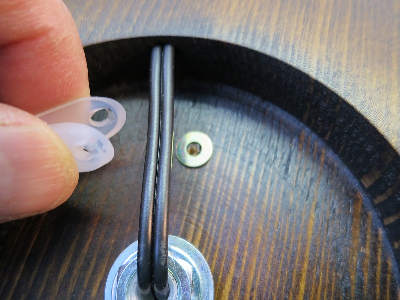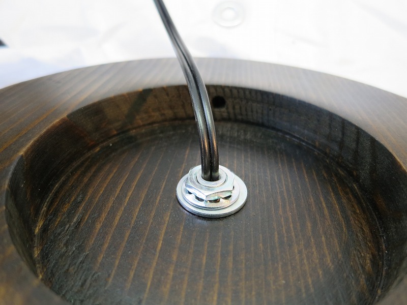 最後に電源コード・バンドをタッピングネジで締め付けて行った時、表面に当てていた指になにやら動きを感じたのです。ヤバ!!。木ネジの先が突き出ようとしていたのです。
