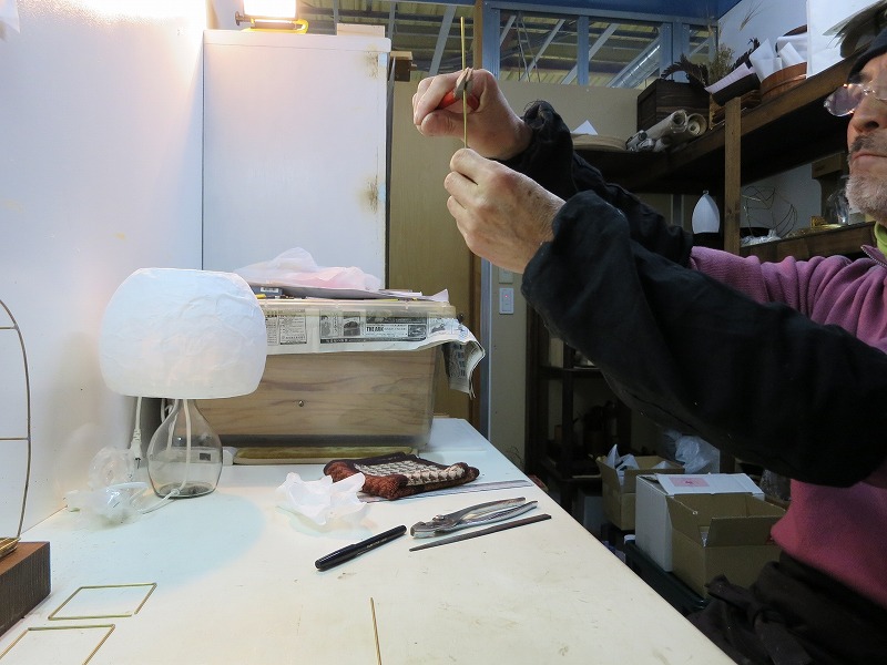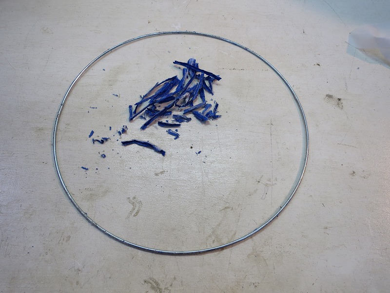 次も治具と言えばジグ。異形のシェードを作る場合、どうしても作る物に近しい骨格が必要です。今日は、ずいぶん前にボツにしたIKEAランプの下部リングを引っ張り出しました。