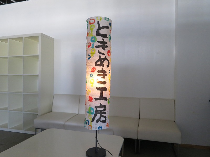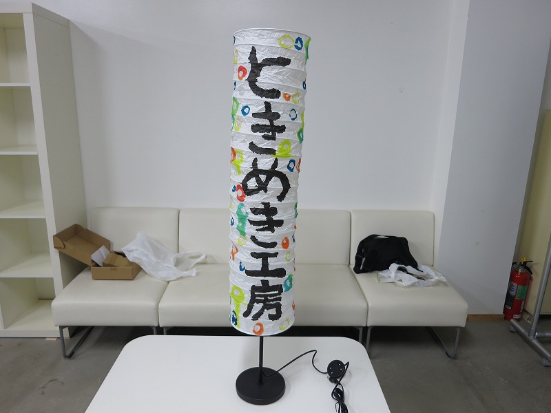 次に、展示会場の看板ランプを試験点灯してみます。有り合せのE-26の20W球では、少し元気が足りません。後で大きな電球を調達に行きましょう。今は、分解組み立ての練習です。