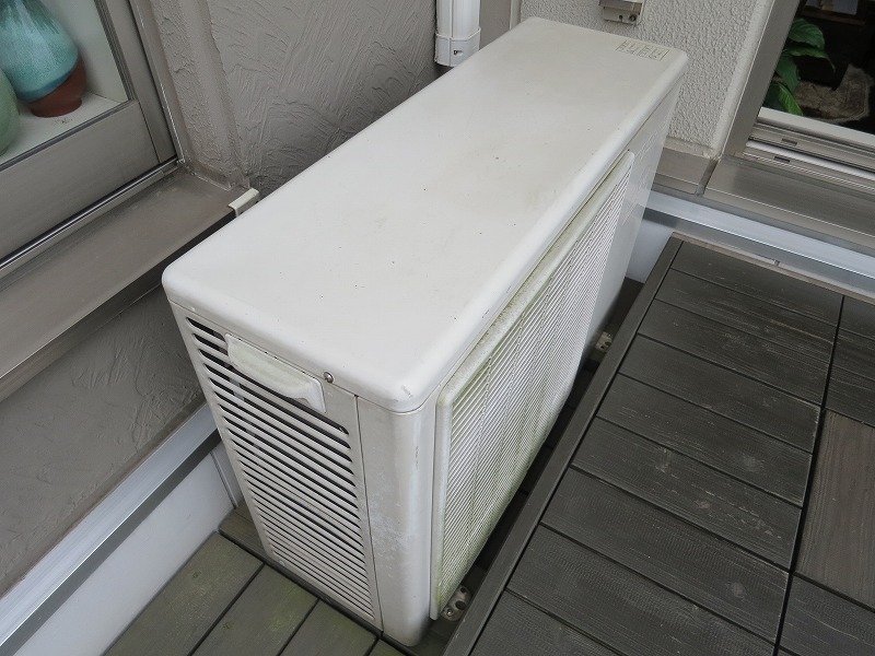 まず本日のハウスキーピング作業は、エアコンの室外機の垢取りです。道具は、車の水垢取り。
