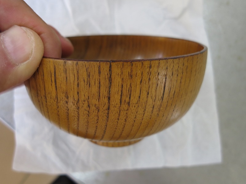 4月中旬に欅の椀をお求めになったお客様から、「木目に沿って割れ入ったので何とかなりませんでしょうか?」との問い合わせでした。もちろん、「何とかなります!」と持ち帰り・・・。