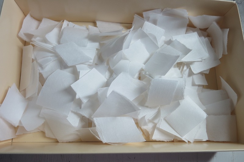 和紙を短冊にちぎって、
