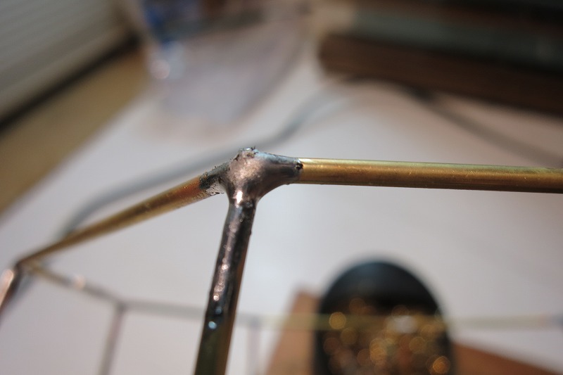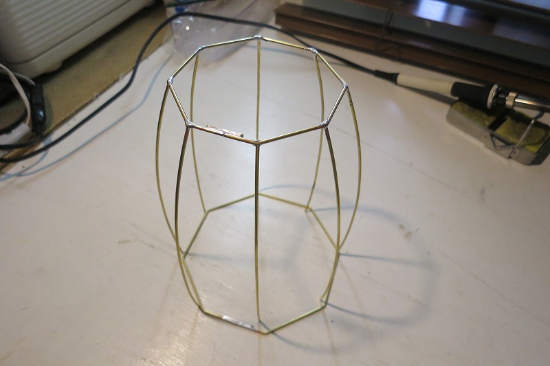 ⑥全体の成型バランスを取りながら順次、ハンダ付けしていきます。下部の八角形の補強を兼
