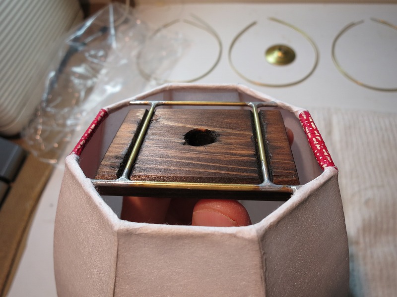 朝飯前の仕事から。「行燈ランプ」の電器装置(電球の高さのこと)の高さを決めます。