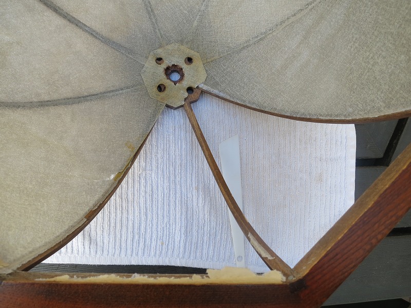 なんか飛行船を係留する時の感じですね^^/。次は、既存のシェード紙を取り外します。