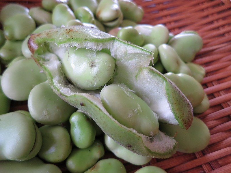 打って変わって、こちらはソラマメむき。