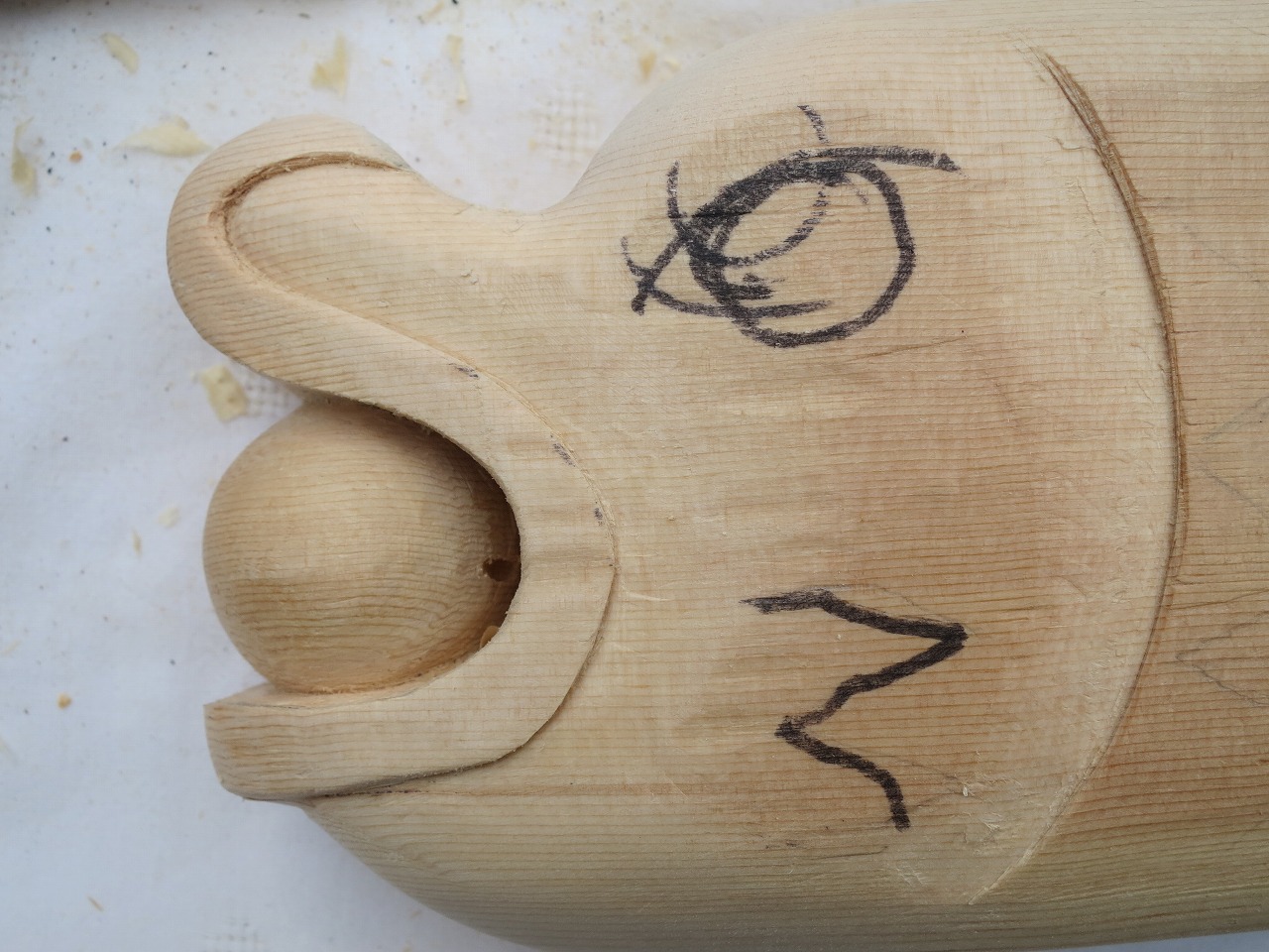 全体の堀の深さは、漆を塗った時に黒ずむので深堀はせず、またあまり鋭角を付けません。