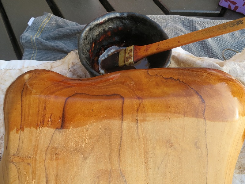 夕方、イオン・モールのアジアン家具の店で「アカシア材のトレイ」をゲット。自宅に帰ってから、上生漆と黒中漆に分けて塗ってみました。結果は、明日出ます。