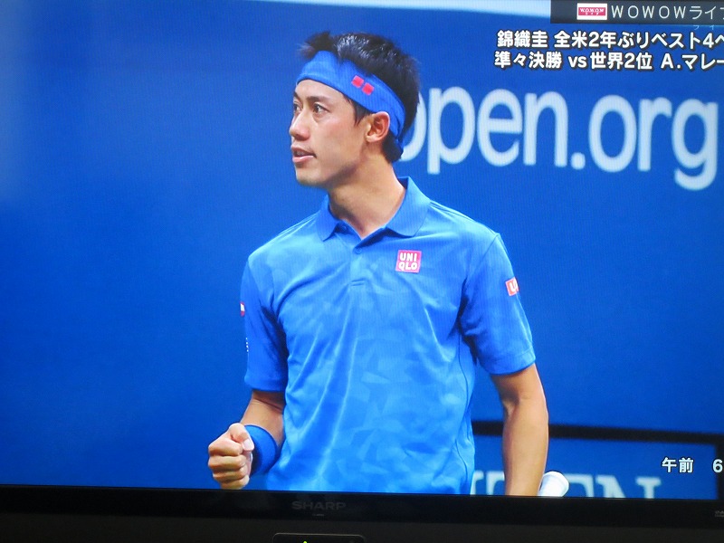 夜中の2時半から4時間半、錦織君とオリンピックのゴールドメダリスト、アンディ・マレイとの試合(US Open 準々決勝)をTV観戦(応援)しちゃいました。結果はシーソーゲームをものにして、錦織君、ベスト4進出です。