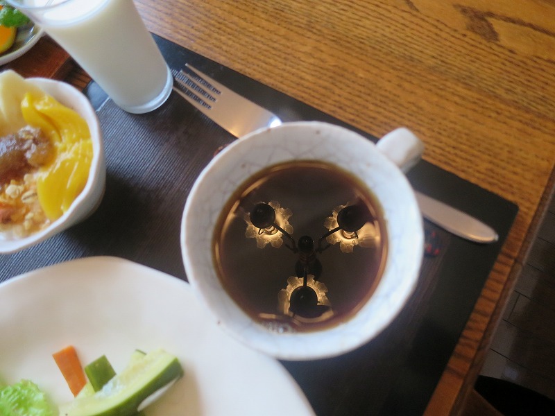 朝食の風景です。毎日同じような記録ですね^^。でも今日はランプが3つ写りました。