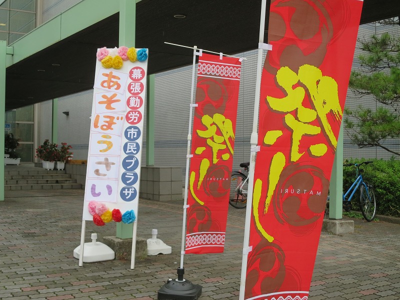 タイトルは、多分、「遊ぼう祭」のひらがなバージョンだと思います。私とカミさんがそれぞれ趣味やスポーツジム活動をしている場所、「幕張勤労市民プラザ」の利用者のためのと言うかファン感謝祭の位置づけのお祭りです。今日はこの記事稿が中心です。(絵日記ですけど^^/)