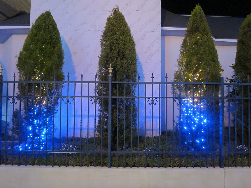 この後、散歩がてらイーオンまで忘年会の食材の下見に行きます。目の前は新規開店の「スシロー」!先だって探検したばっかり。帰路は、ホテル・スプリングスのライトアップをパチリ。