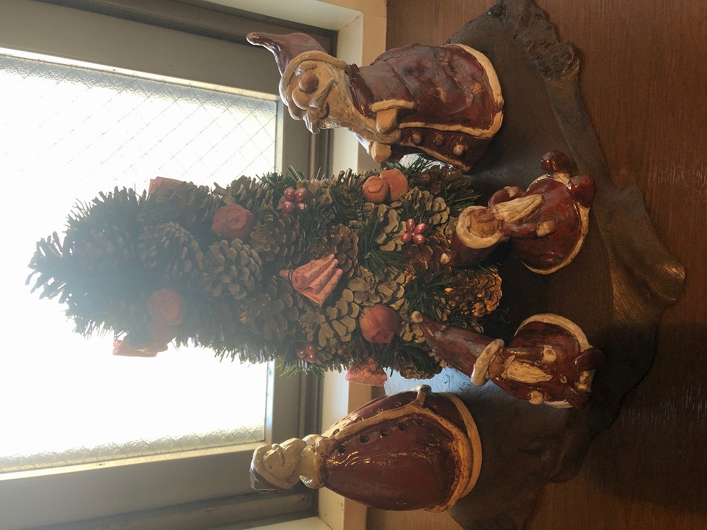 最近では外向けのクリスマス飾りはほとんどみかけません。多分、家の中でこじんまりと楽しんでいるのでしょう。我が家もカミさんが作った個性的なサンタさんがいます。