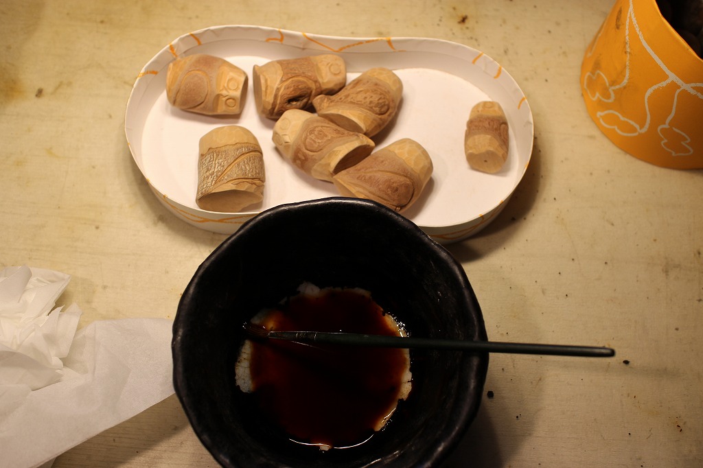 こちらは+αの仕事。漆を出したついでの盛り付け作業です。もう完成に近づいています。