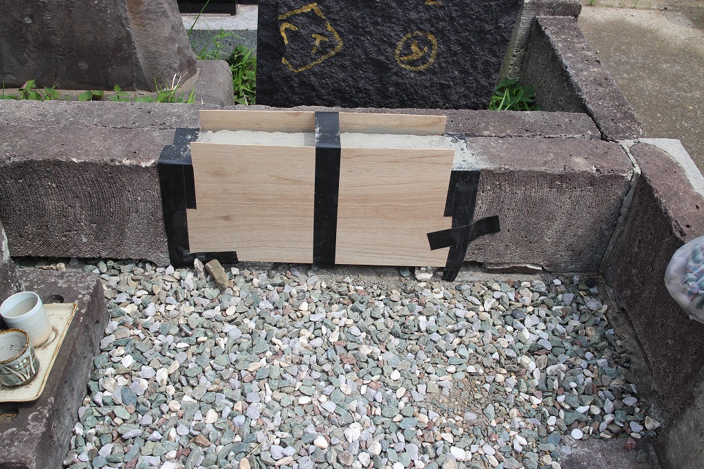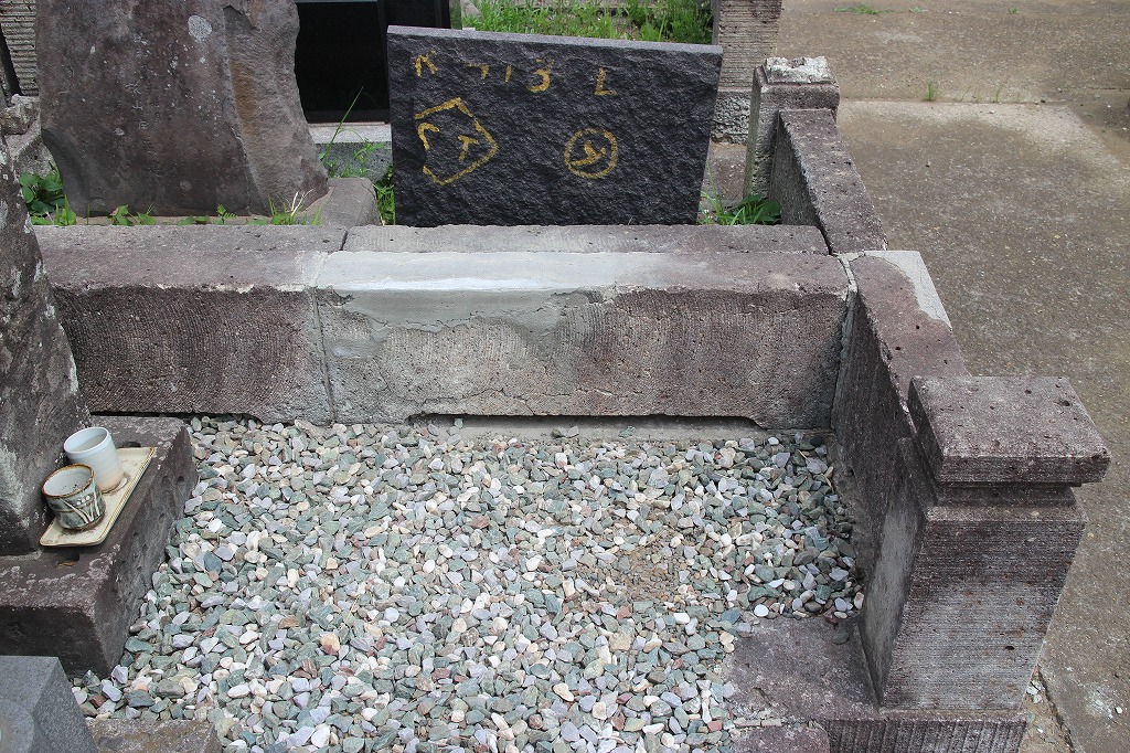 ②前編のDIY編で紹介したお墓の大谷石の修理の仕上がり状態です。まぁ自分の代はこれで