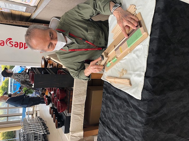 ③本日(4/19)の「春の工芸品まつり」のスナップです。今回の目玉はお箸作りの実演でした。