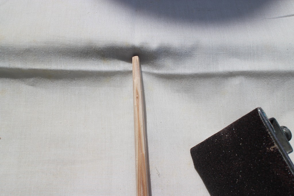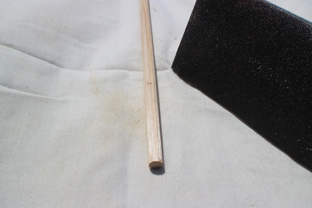 使う道具はミニ作業台+#120のサンドペーパー。このあとカンナで先細にしていきます。